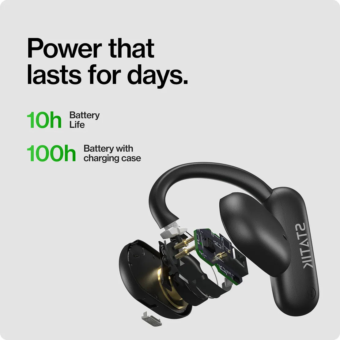 With nothing lodged in your ear canal, you can listen for hours without discomfort, headaches, or that “plugged” feeling. Lightweight and secure, they stay in place even during intense workouts.