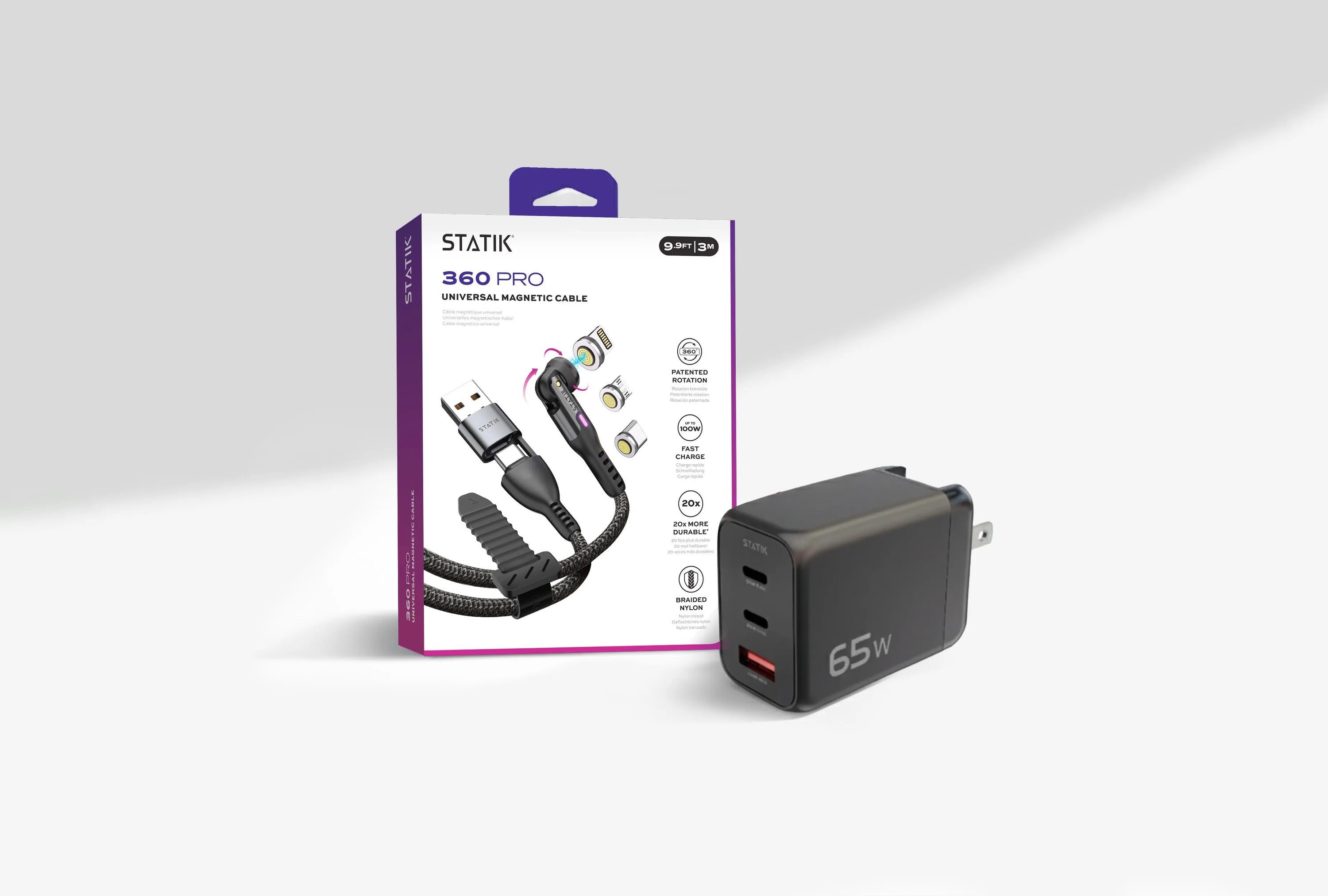 Kickstart your charging setup with this charging starter kit. Featuring the Statik 360 Pro cable and a 65W power adapter, this bundle delivers fast, reliable charging for all your devices. With universal compatibility and high-speed performance, it’s the perfect combo for powering up at home, in the office, or on the go.