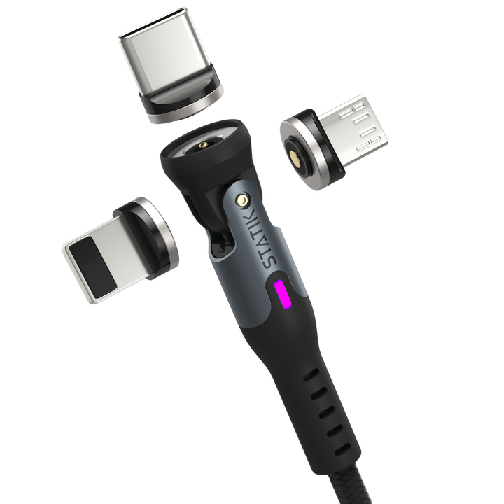 Statik 360 Pro | Universal 5-in-1 Ultra-Fast Rotating Magnetic Charging & Data Transfer Cable | USB-C, Lightning & Micro-USB