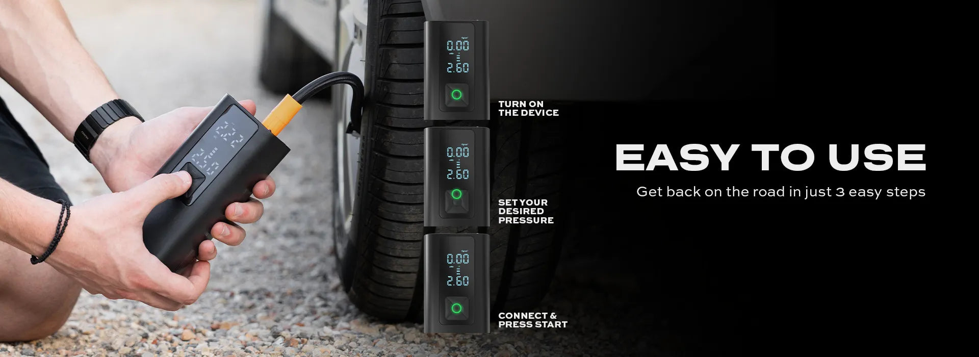 Power Bank Built In. Tire Hero doubles as a power bank to charge up your phone or tablet in an emergency.