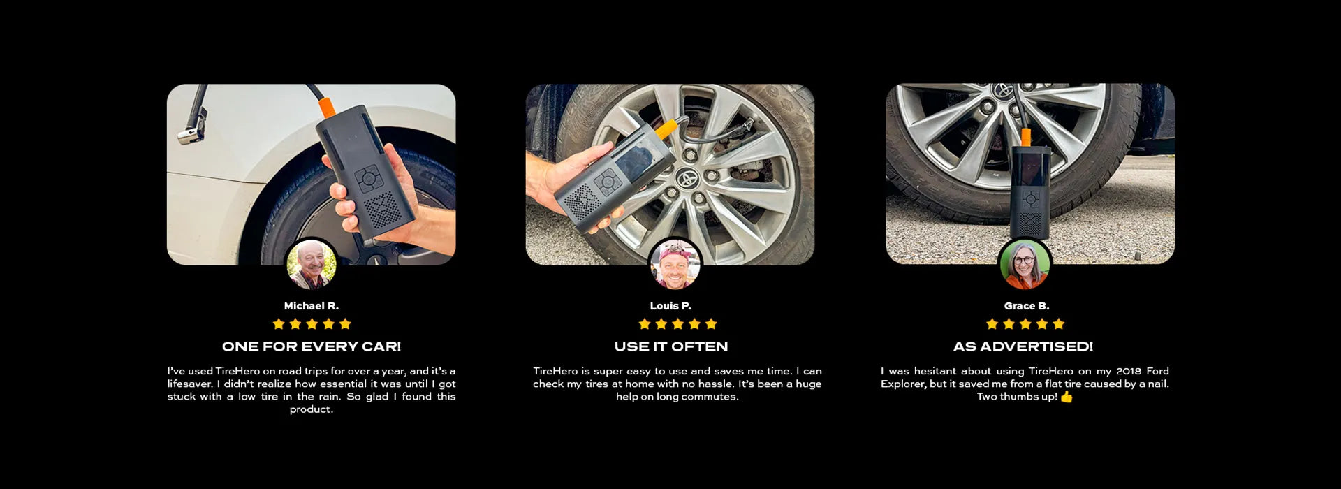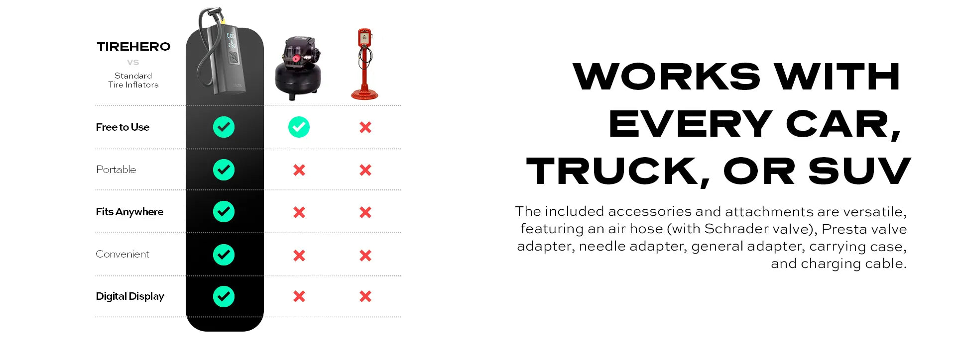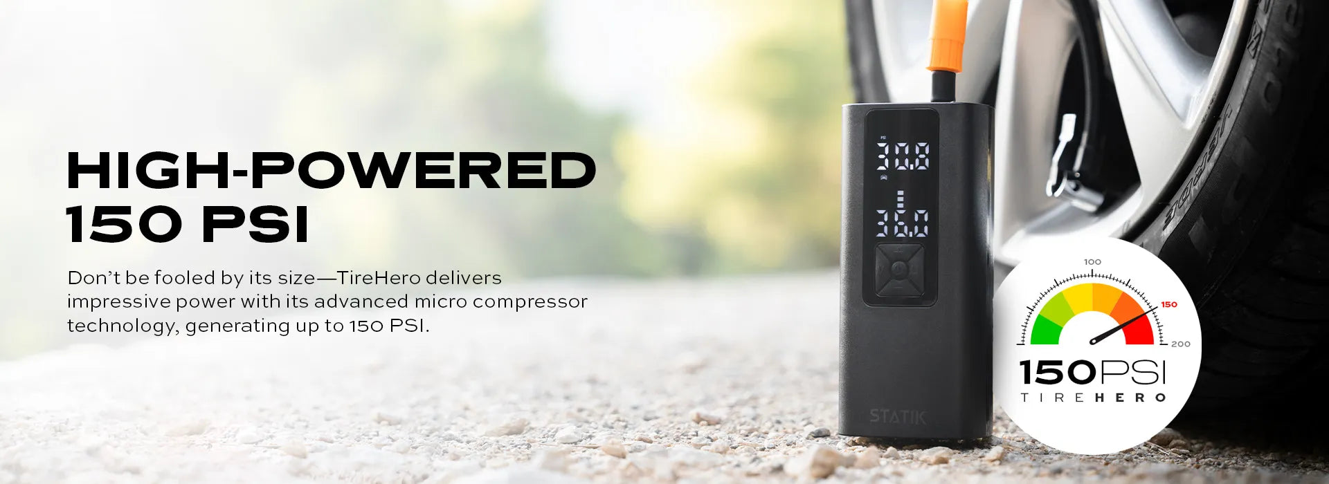 TireHero Portable Air Pump. Easily Inflate Car Tires, Bicycles, Motorcycles, Scooters, and More - In Just Minutes.
