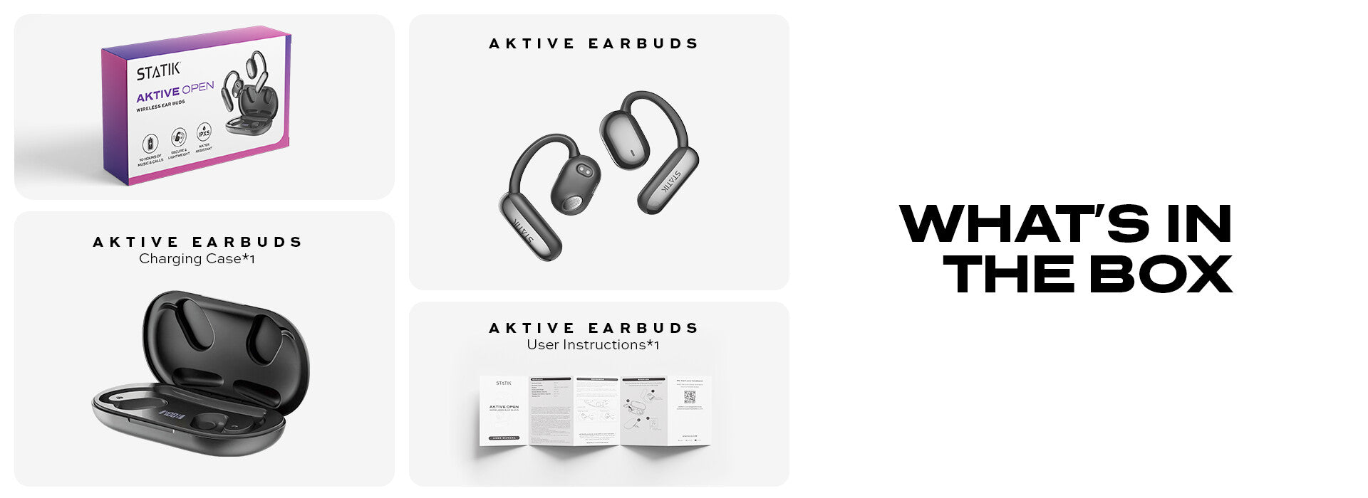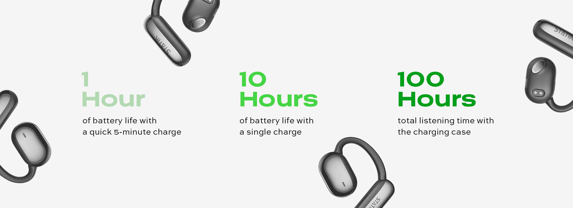 - Fast Charging & Long-Lasting Battery. Aktive Open’s charging case rapidly recharges your earbuds and gives you days of audio playback.