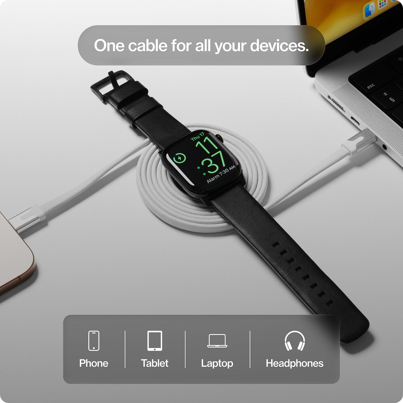 Magnetic cable that wraps up neatly, stacks with other cables, and keeps everyday charging tangle-free.