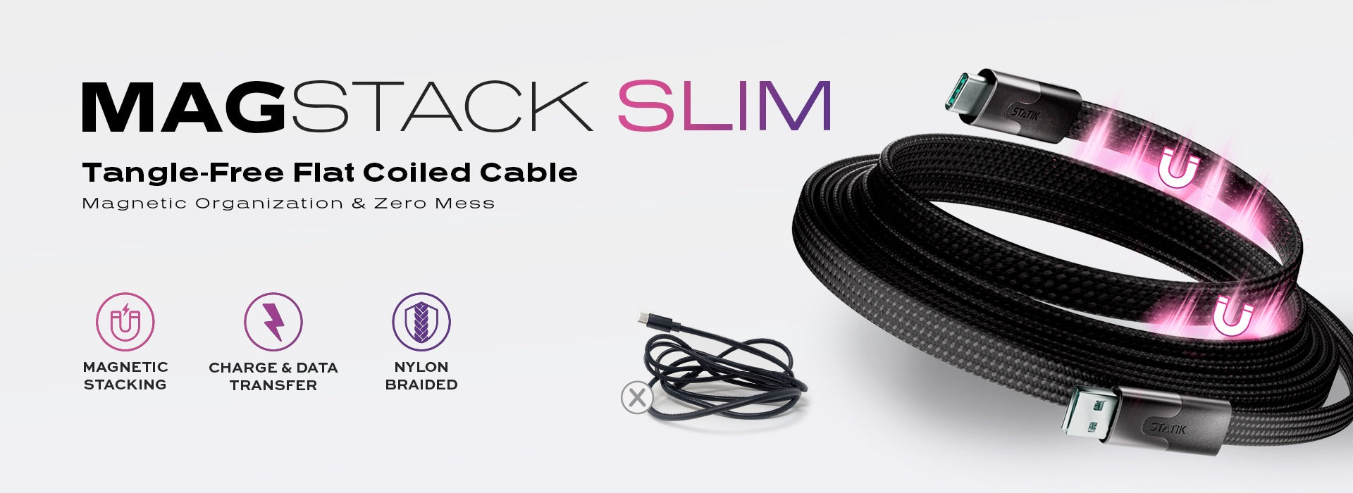 No More Messy Cables. MagStack Slim wraps around itself easily and stays out of your way for a more organized and minimalistic setup.
