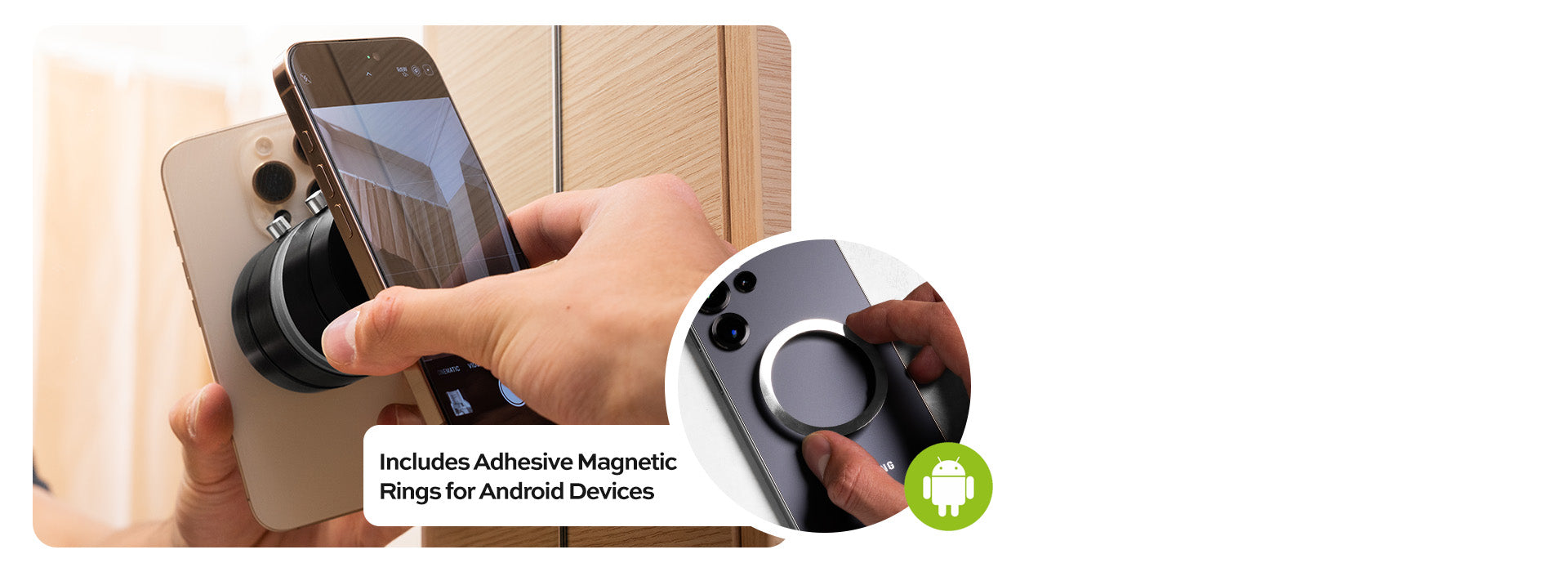 Apple MagSafe & Android Compatible. Built-in Apple MagSafe compatibility. For Android and Apple phones without MagSafe, the HyperMount comes with 2 magnetic ring adapters.