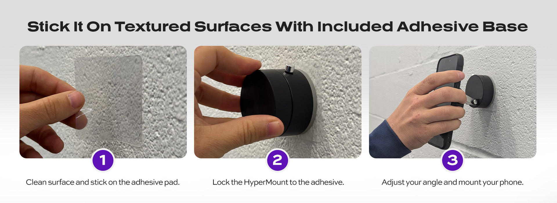 Absolutely! The mount includes a 360° swivel ball joint— easily rotate between portrait and landscape, or tilt to your perfect angle.What surfaces can I mount it to?Mount HyperMount to: