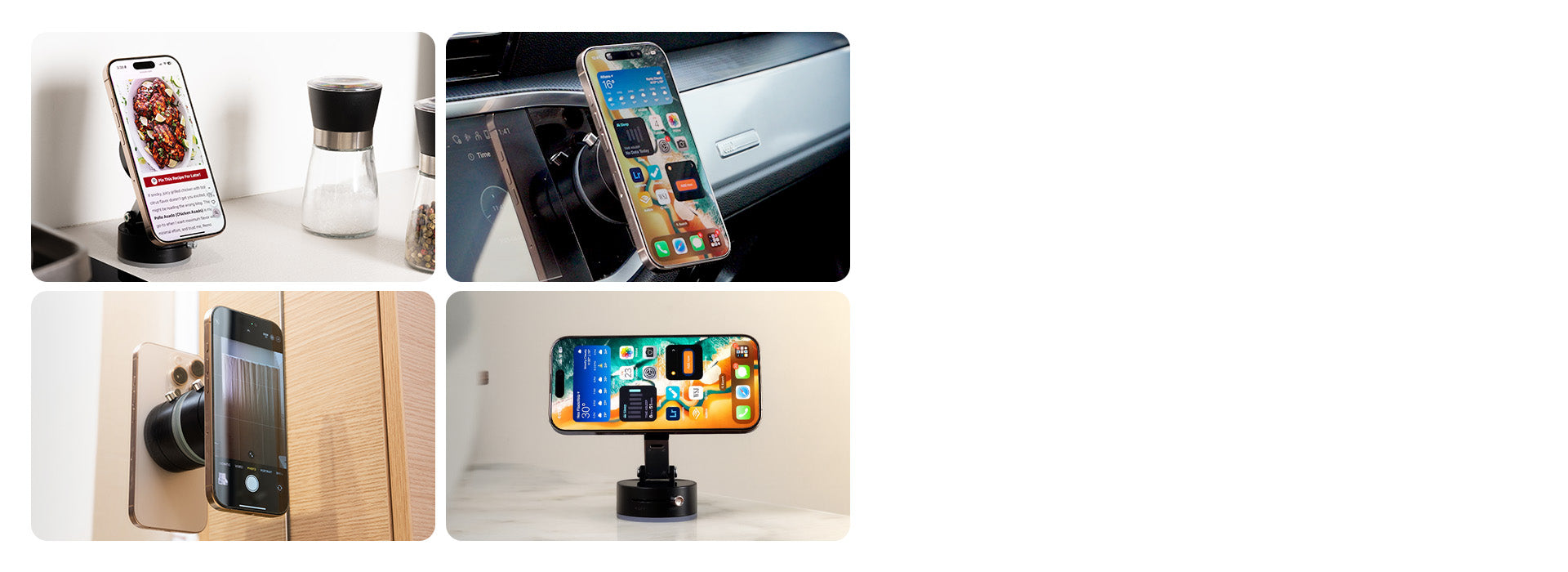 HyperMount combines industrial-grade vacuum suction,MagSafe-style magnetic mounting, and tool-free installation— so your phone stays locked in place on virtually any surface, even during off-road drives or in extreme heat.Will it work with my phone?Yes! HyperMount is compatible with: