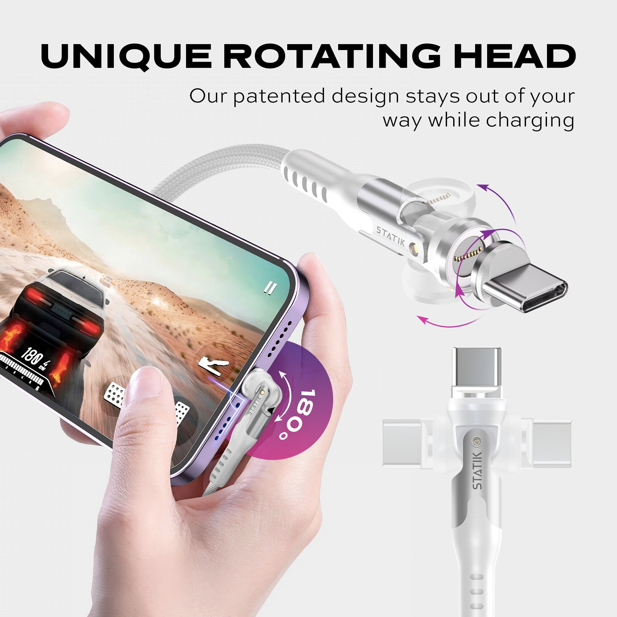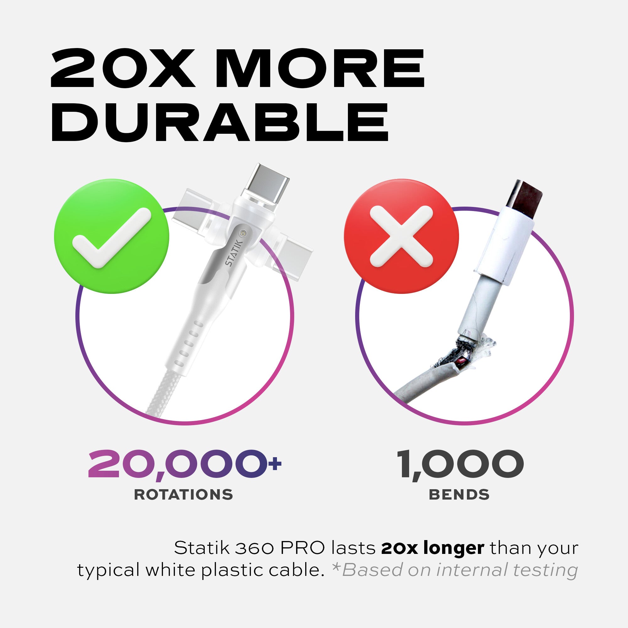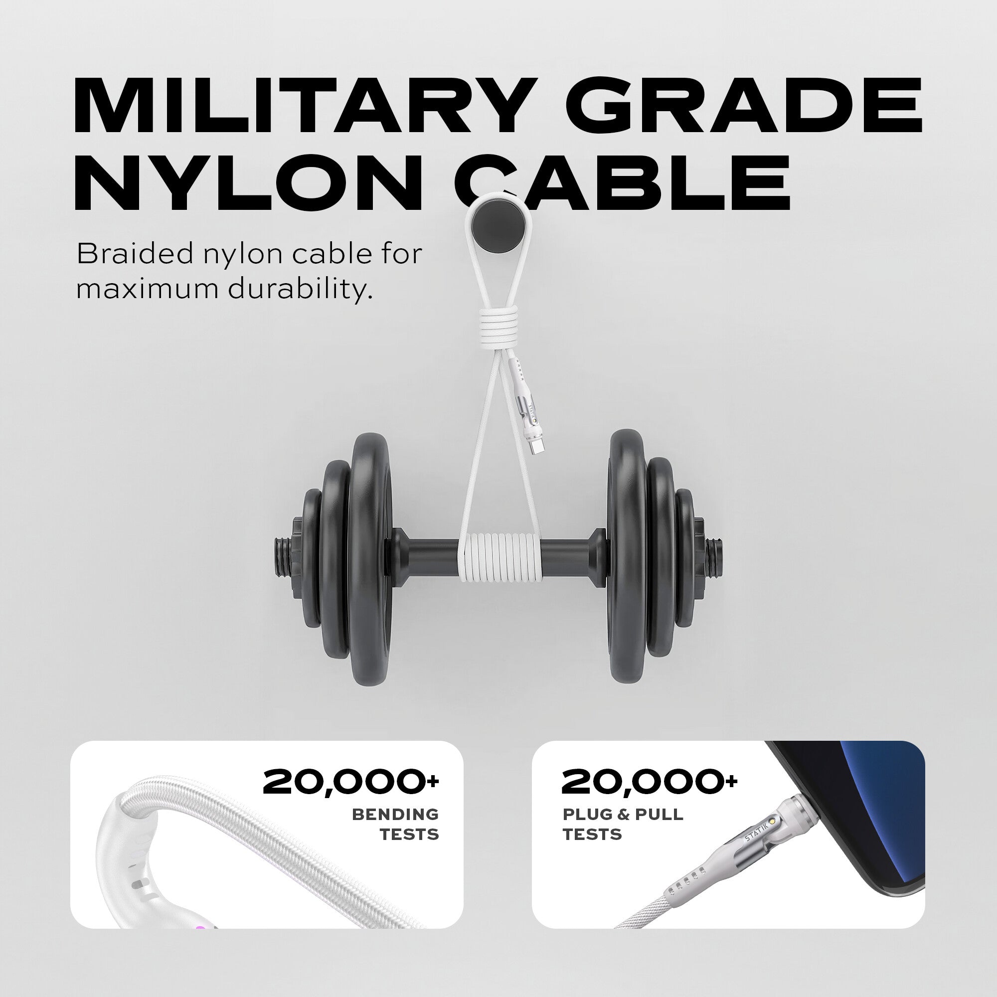 Made out of Ultra Durable Nylon Braid, Statik 360 Pro has strong protection against fraying and breaking.