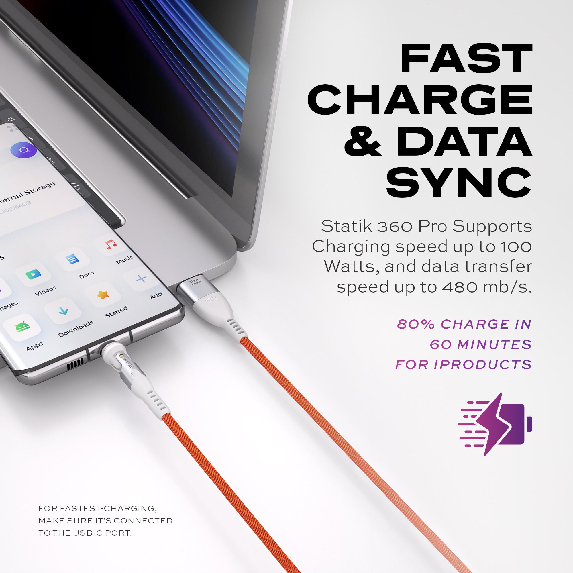 Made out of Ultra Durable Nylon Braid, Statik 360 Pro has strong protection against fraying and breaking.