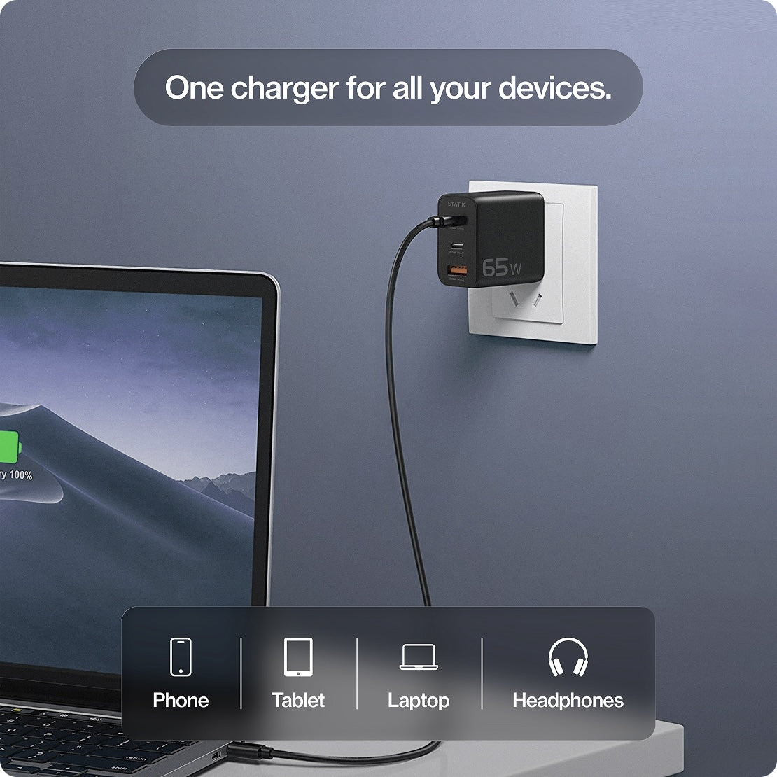 Laptops, Phones, Earbuds, and More: Charge up all your devices with one adapter. This Statik 3-in-1 Adapter automatically adjusts the power output to match your device.