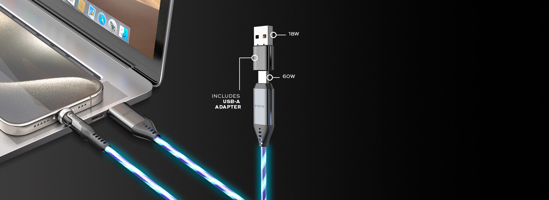 - LED Light-Up Cable. See when your device is being charged thanks to the LED cable that lights up when powering your device, so you’re never surprised by a dead battery in the morning.