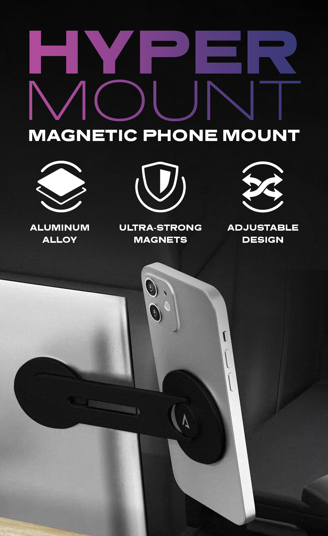 Universal - For Apple & Android: The HyperMount Switch gives you an extra screen while you work and play. Uses a native magnetic connector with Apple iPhone 12, 13, and 14, as well as a free magnetic adaptor for other phones.