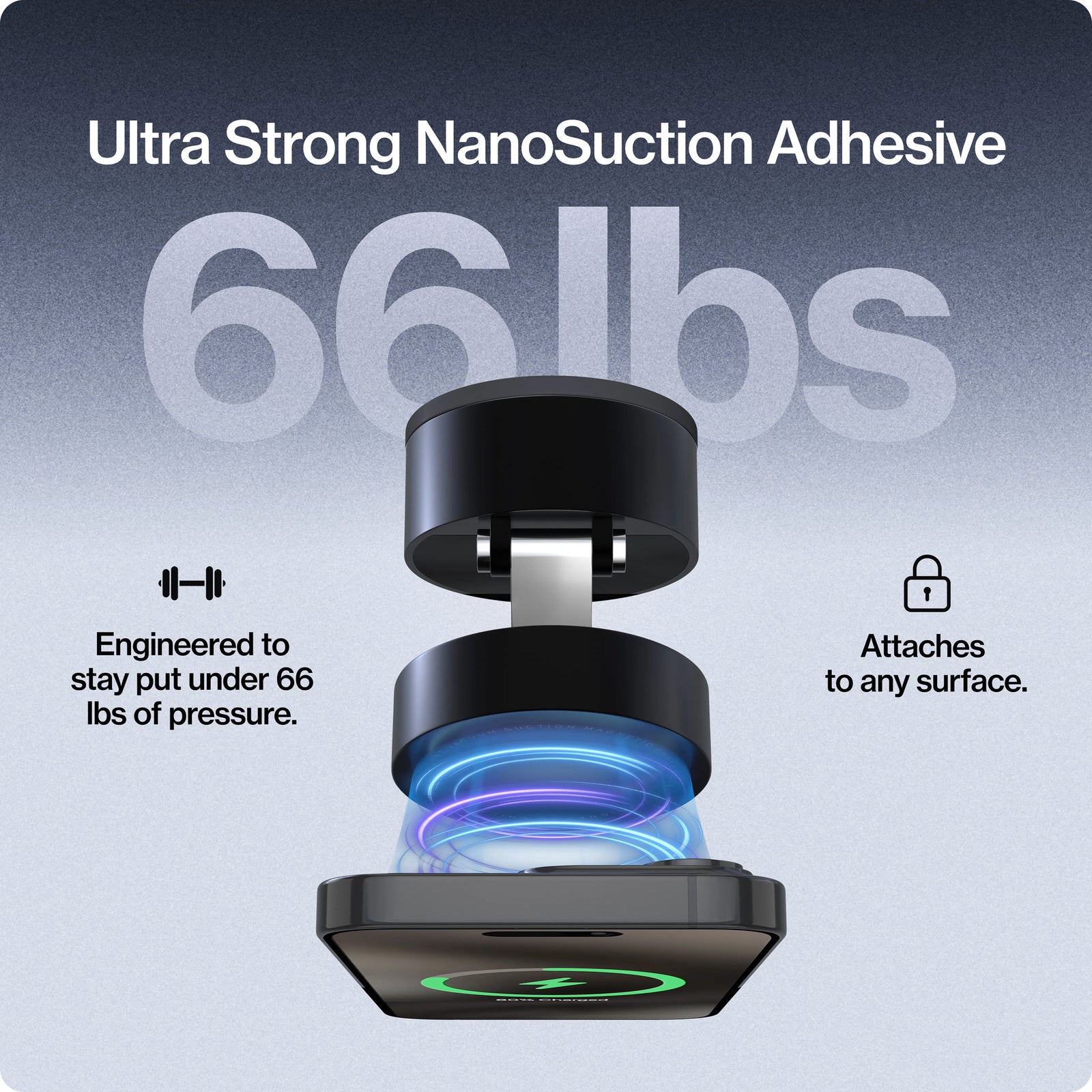 Universal MagSafe Mount re-engineered with a Nano-Suction base. Locks onto textured dashboards, drywall, and glass where standard mounts fail.