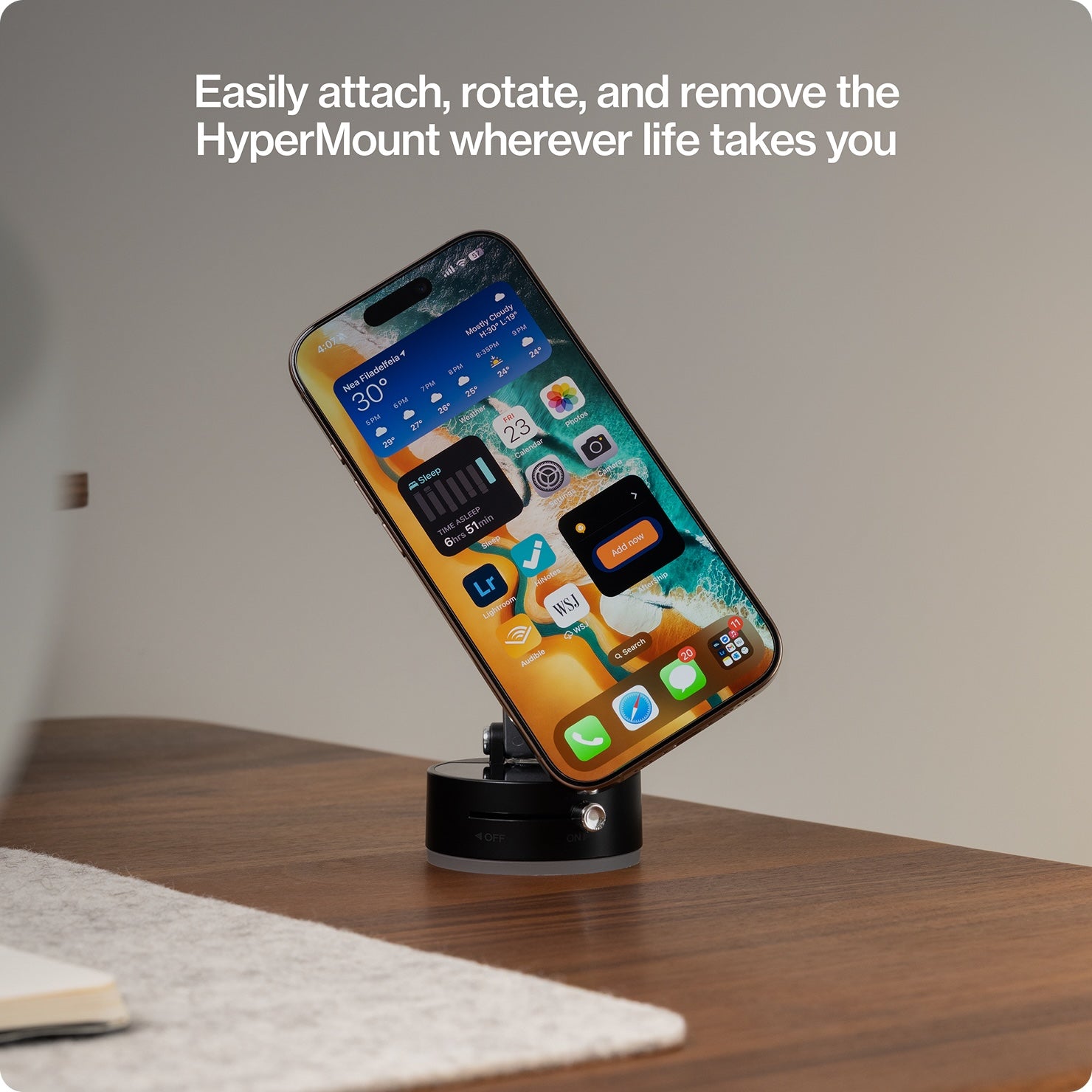Built for MagSafe iPhones and cases, with two included magnetic ring adapters for non-MagSafe phones. No matter your device, HyperMount locks on tight.