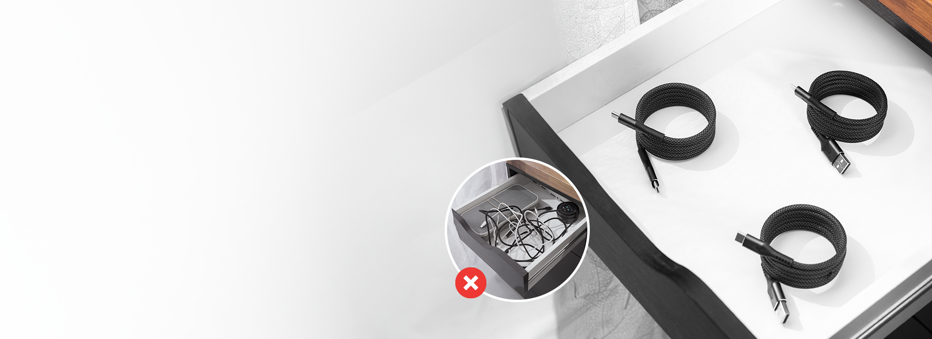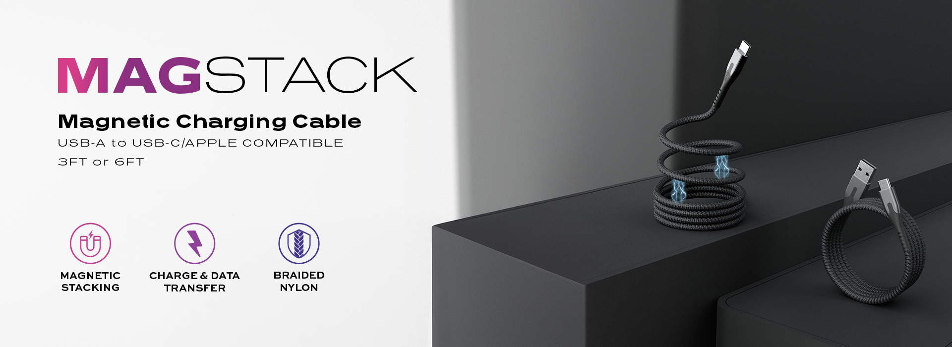 Stack multiple cables together: MagStack cables magnetize to themselves and each other, so you can turn your messy cable drawer into a neatly organized sanctuary of charging cables.