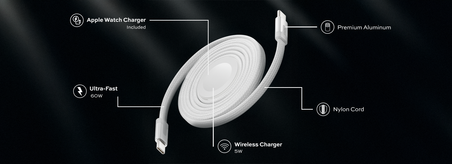 Apple Watch Charger Included. Made with premium aluminum and a uniquely crafted shell for a perfectly organized cable every time.