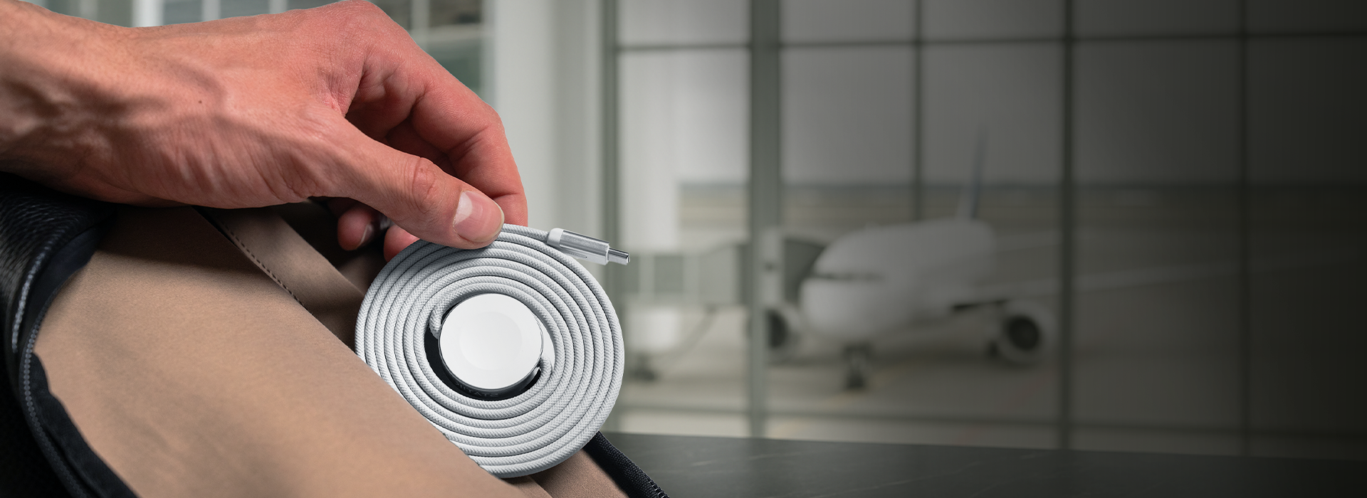 Patented Magnetic Cable. The unique cable coils seamlessly around the Apple Watch Charger to create a slim charging combo that fits anywhere.