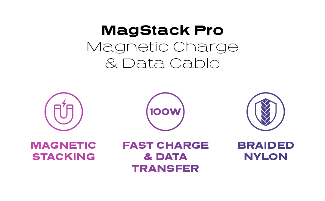 Stack multiple cables together: MagStack Pro cables magnetize to themselves and each other, so you can turn your messy cable drawer into a neatly organized sanctuary of charging cables.