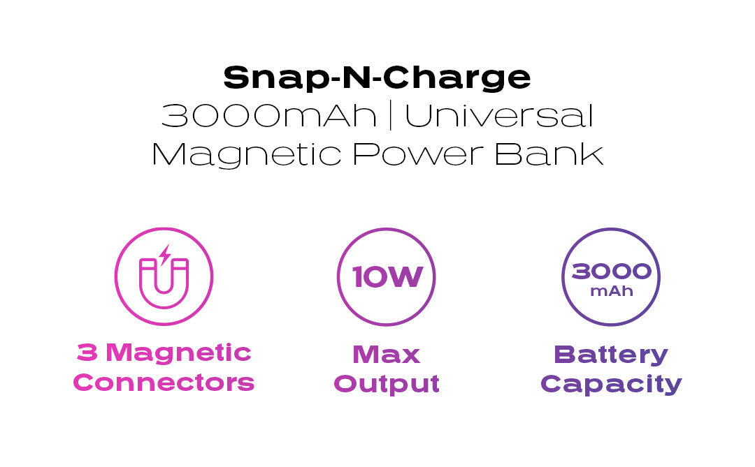- No cords. Snap it, charge it: magnetic tips to easily connect and disconnect from any of your handheld devices and accessories, while keeping your charging ports protected from dust & dirt.