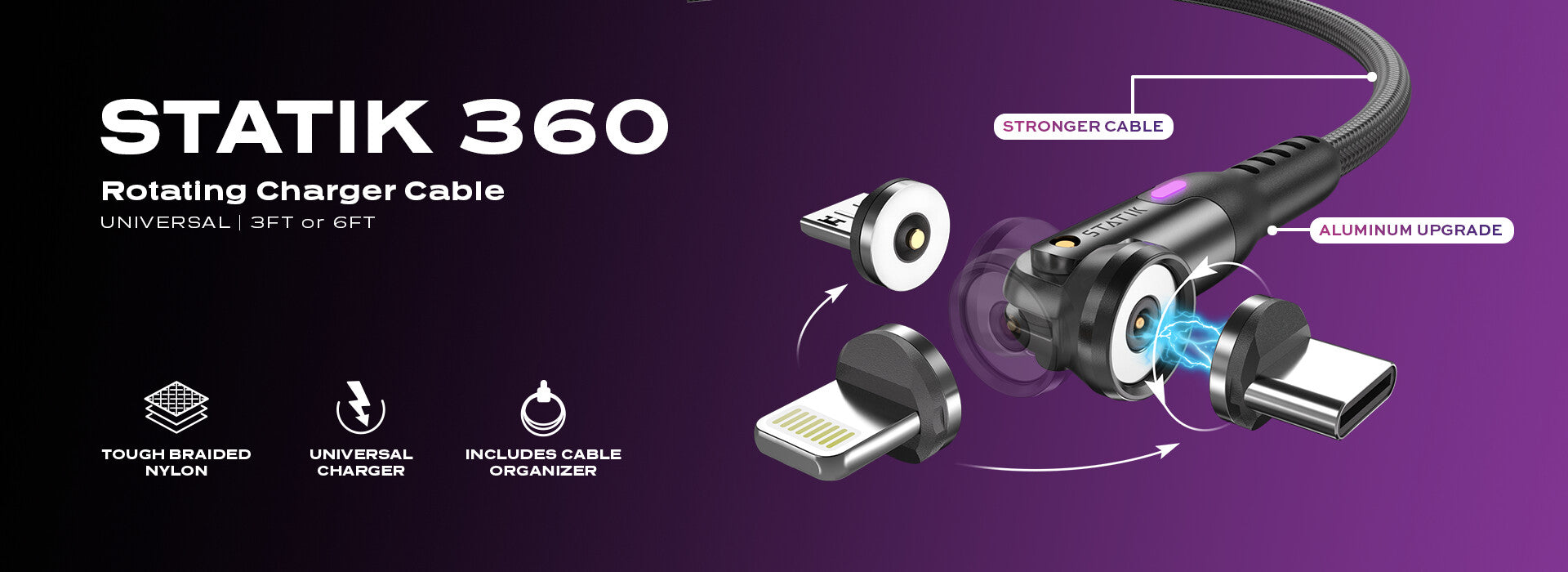 - Play and Watch Videos While Charging: Statik360 stays out of the way! Rotate 360 degrees to make it as comfortable as possible for you to play games, watch movies, stream shows, and keep charging.