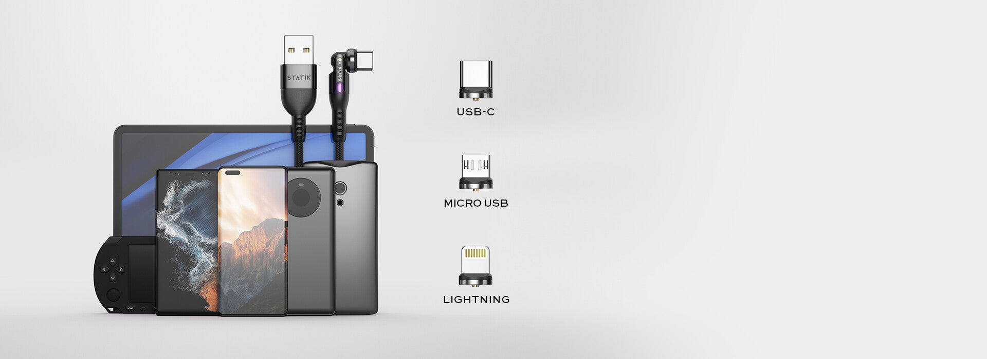 - Magnetic Tips Included: one of each. Lightning, Micro-USB and USB-C.